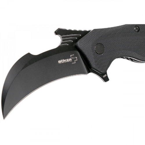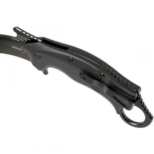 Boker Ocelot - тактический складной нож-керамбит с агрессивным внешним видом и комфортной рукоятью. Клинок по форме модифицированный Hawkbill blade (клюв ястреба) из отлично зарекомендовавшей себя стали D2, с прекрасными режущими свойствами, несложной заточкой и хорошей вязкостью. Оригинальный интересный дизайн известного найфмейкера Бориса Манашерова.